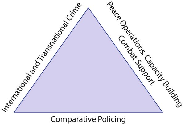 The second dimension consists of international and transnational crime and the international policing strategies that are emerging to respond to new threats. The third dimension is the analysis of the work of police forces in peace operations and capacity building in post-conflict and developing countries. For gendarmeries with military policing tasks, the combat support role can also be added in this side of the triangle.